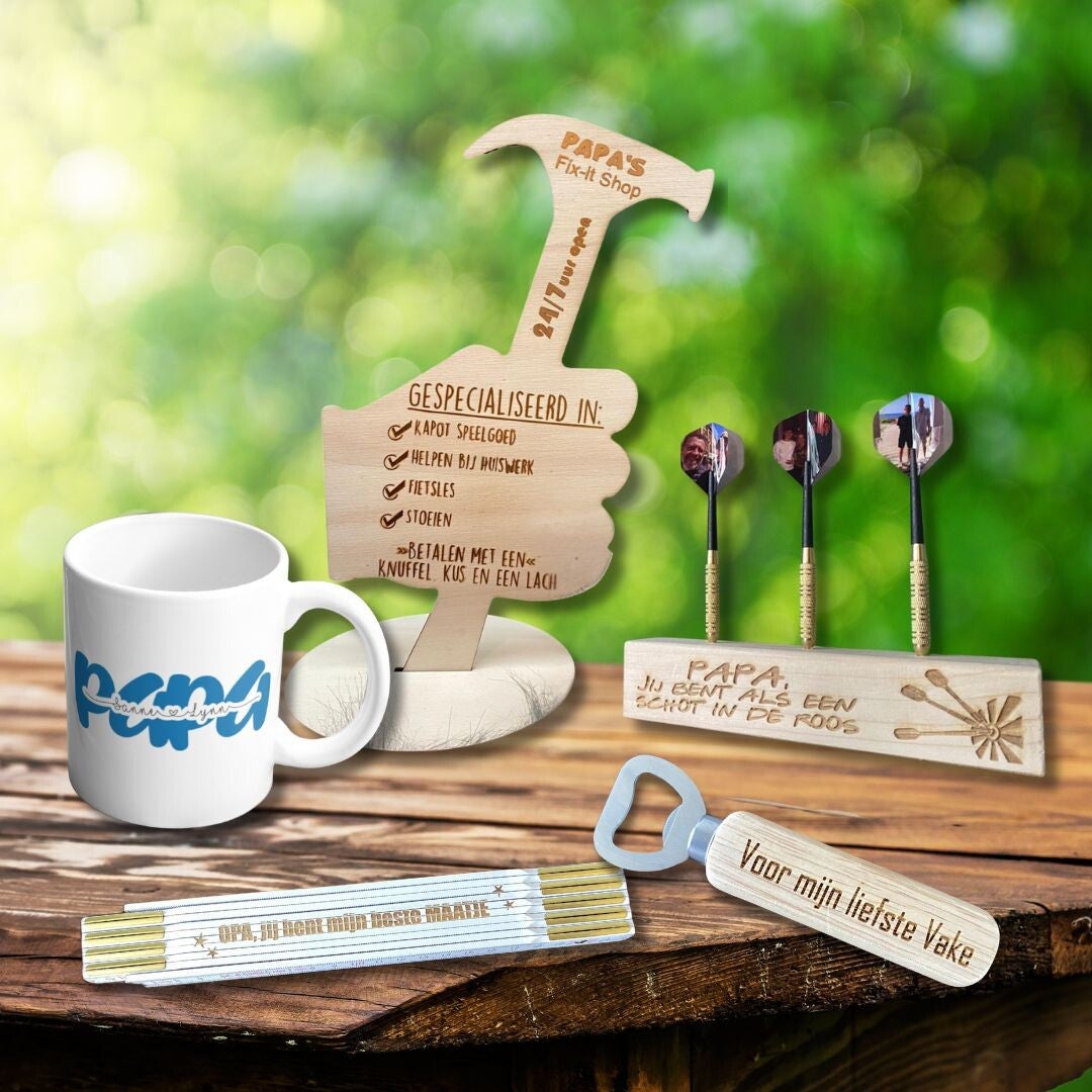 Een cadeau met een naam, foto of lieve boodschap maakt Vaderdag écht bijzonder. Het laat zien dat je moeite hebt gedaan en aan hem hebt gedacht. Of hij nu houdt van klussen, spelletjes of genieten van een drankje: met een uniek cadeau scoor je altijd punten!