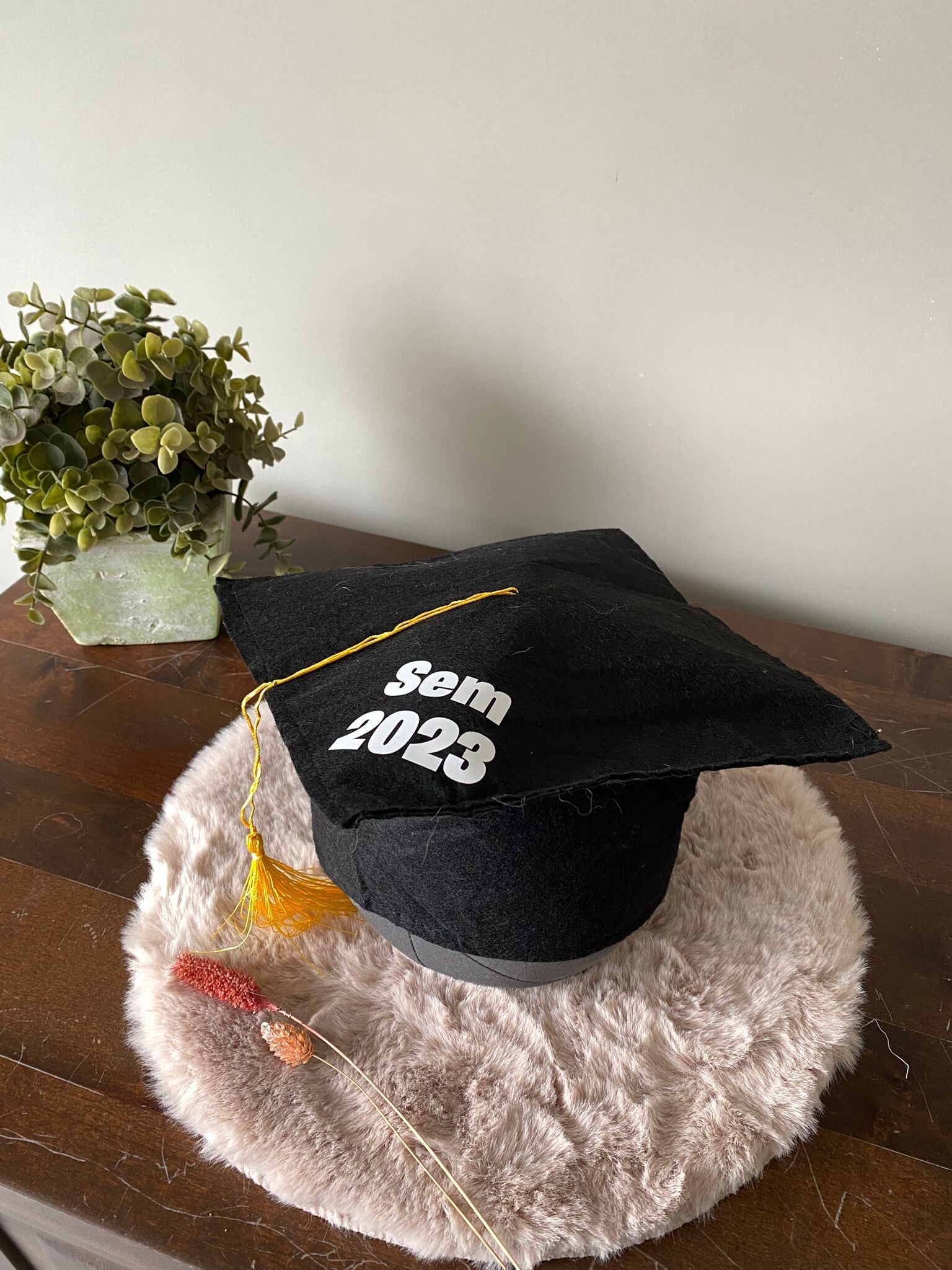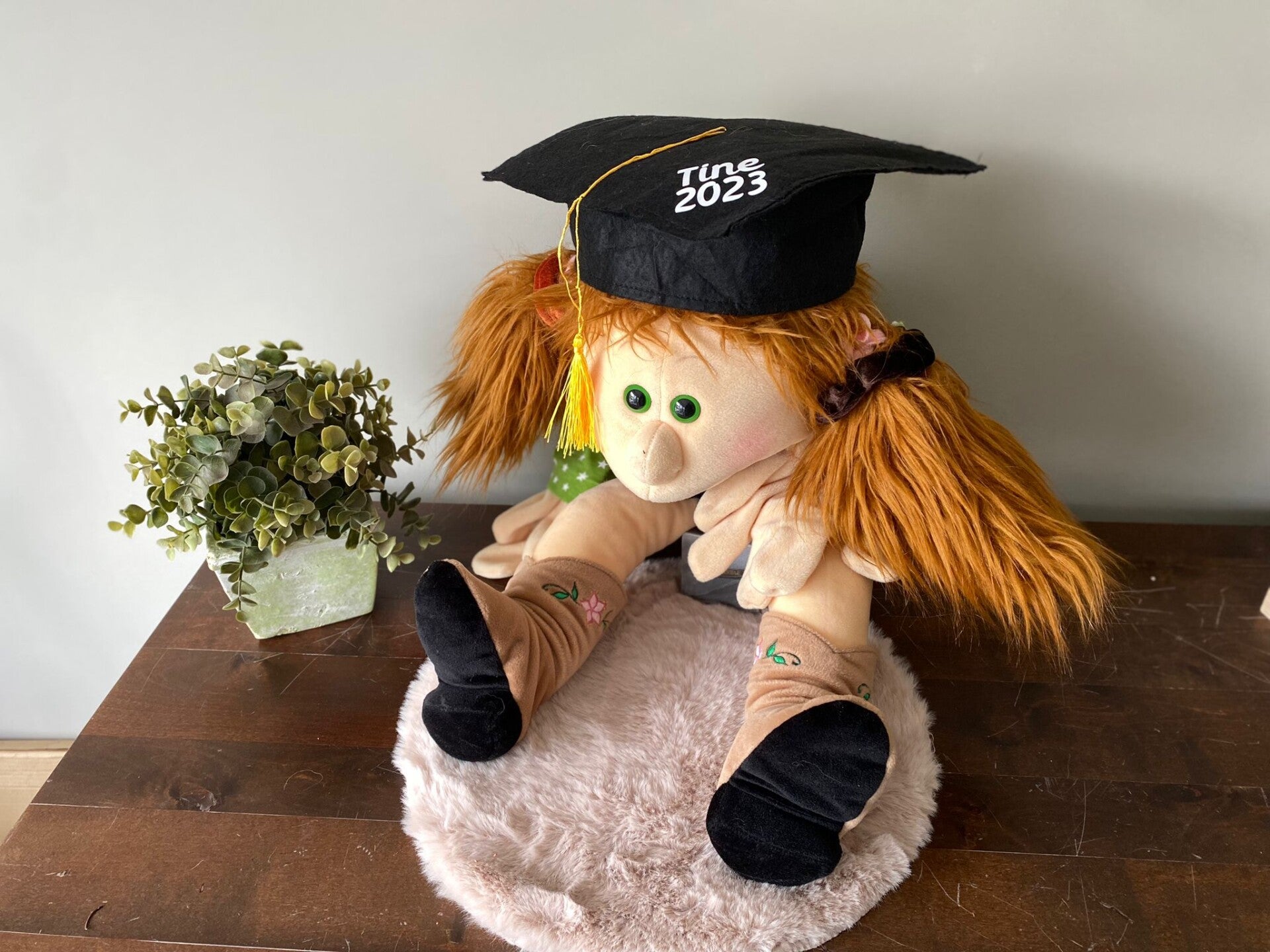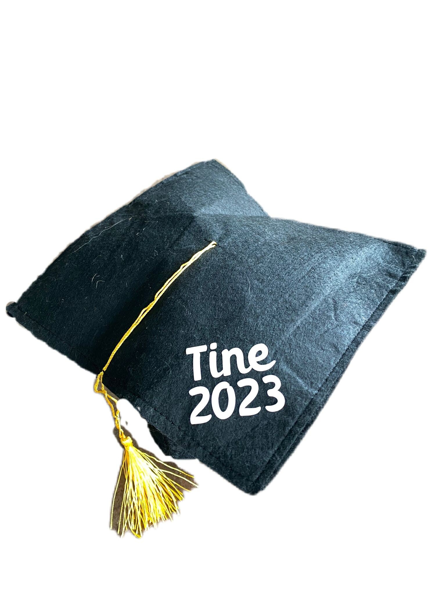 Dan is het misschien heel leuk om ze een afstudeerhoedje met naam cadeau te doen.