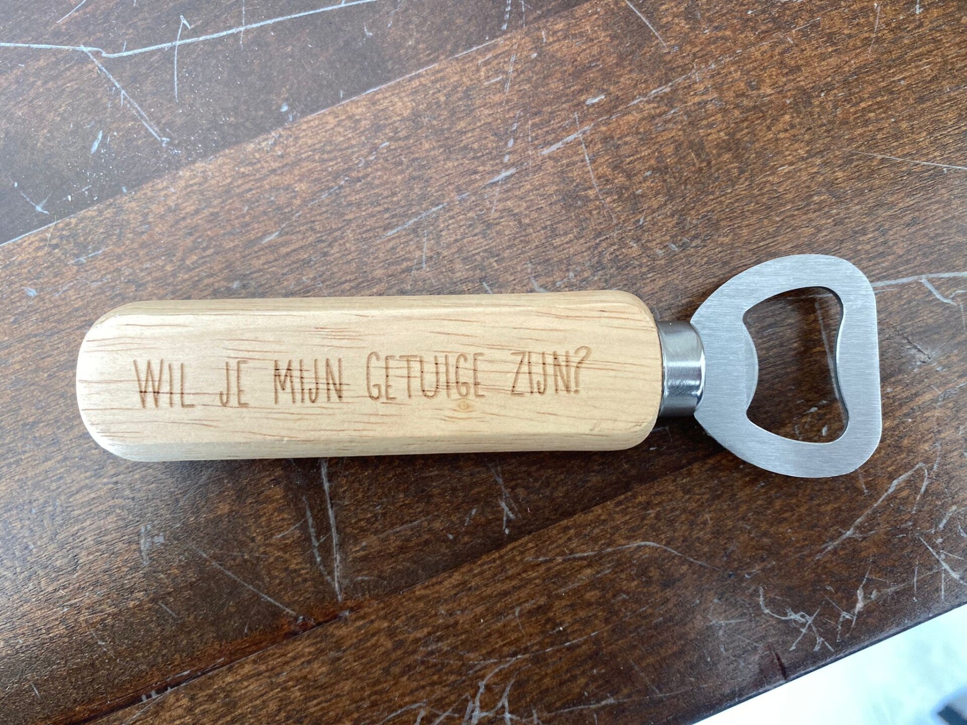 Flesopener met tekst Wil je mijn Getuige zijn?