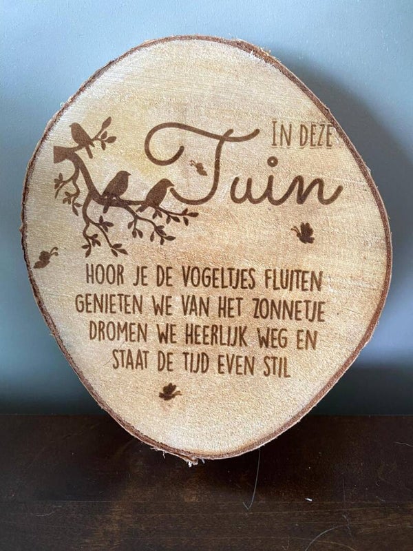 Deze Boomschijven kan ik bedrukken met verschillende teksten op.