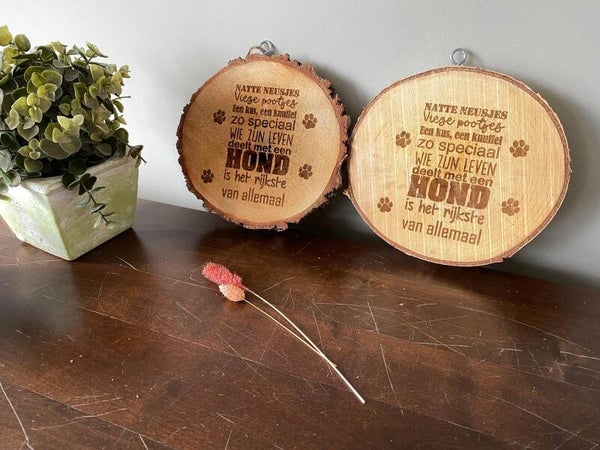 Boomschijf met tekst: Natte Neusjes