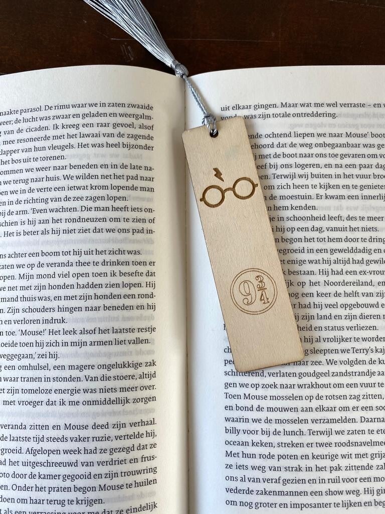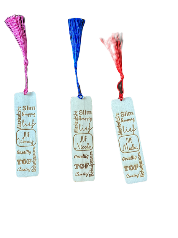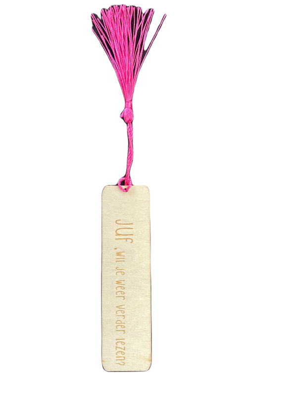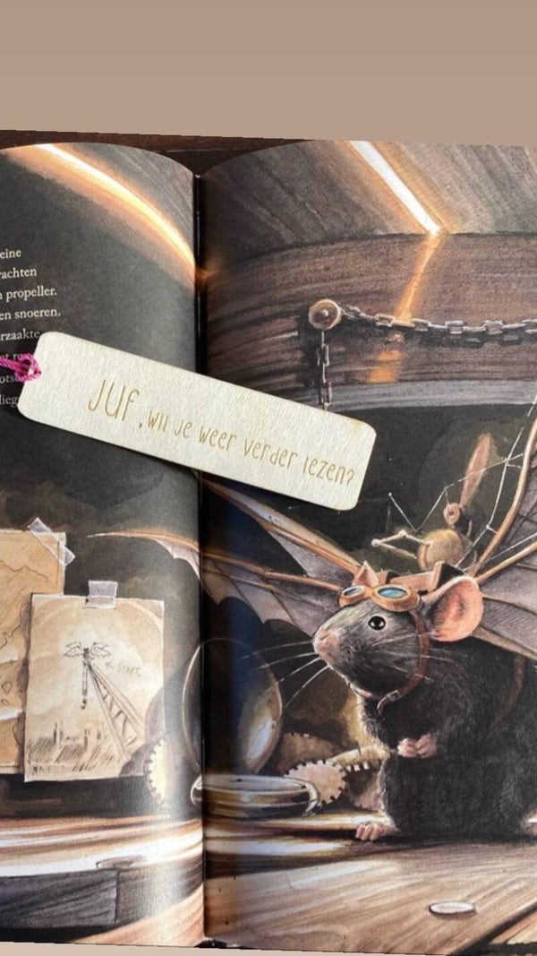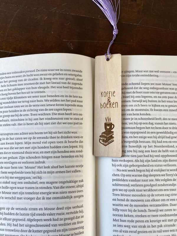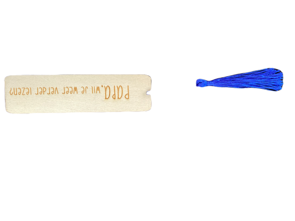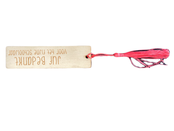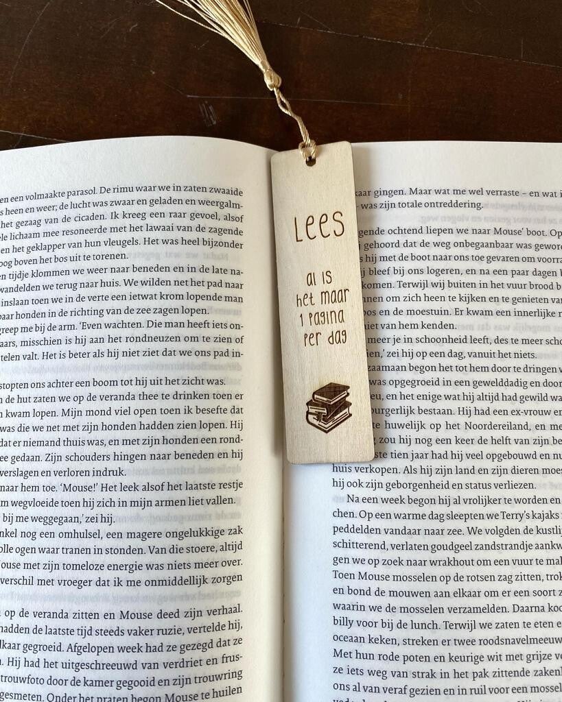 Houten Boekenlegger met tekst: METIE, wil je weer verder lezen?