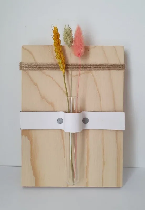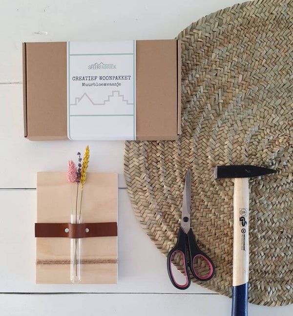 Dit leuke hippe vaasje op een plankje kun je nu zelf maken met dit leuke DIY pakket Muurbloemvaasje!