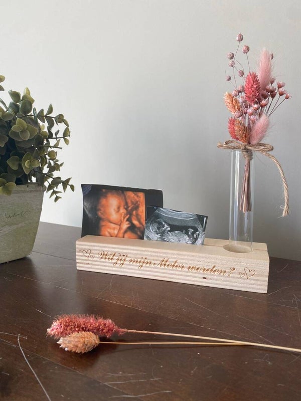 Kaarthouder met buisje met droogbloemen Wil je mijn meter worden?