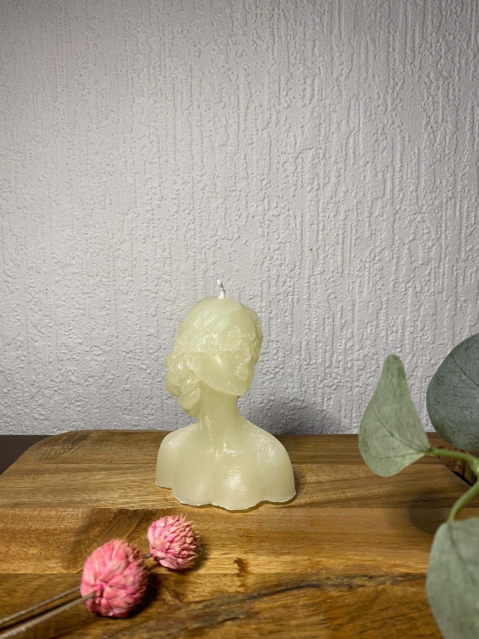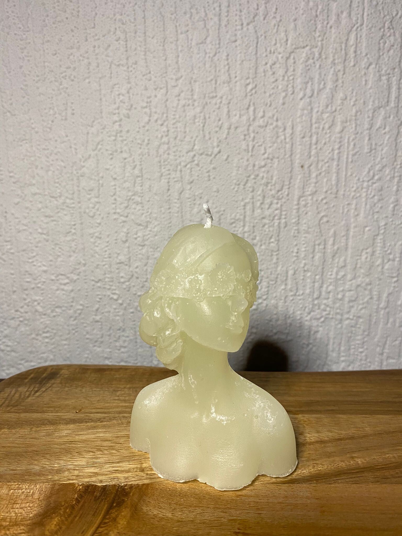Kaars geblinddoekte vrouw doorschijnend crèmekleur