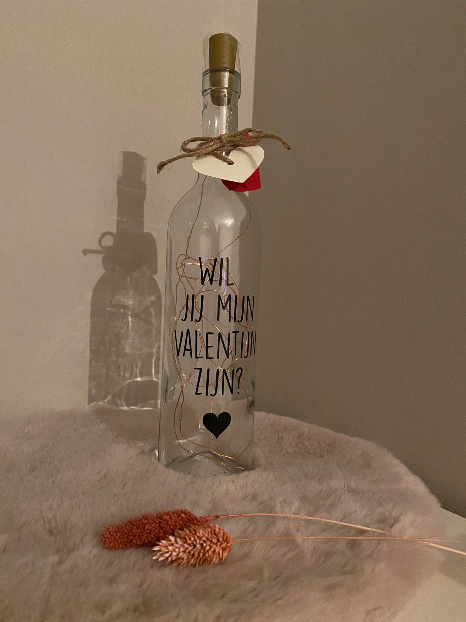 Lichtfles met tekst:"Wil je mijn Valentijn zijn?"