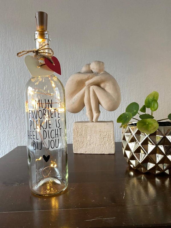 Lichtfles met tekst:"Mijn Favoriete plekje is heel kort bij jou"
