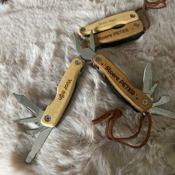 Multitool met tekst hout