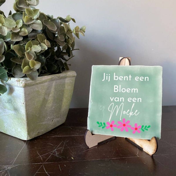 - Inclusief een stijlvolle houten houder om je tegeltje mooi te presenteren.