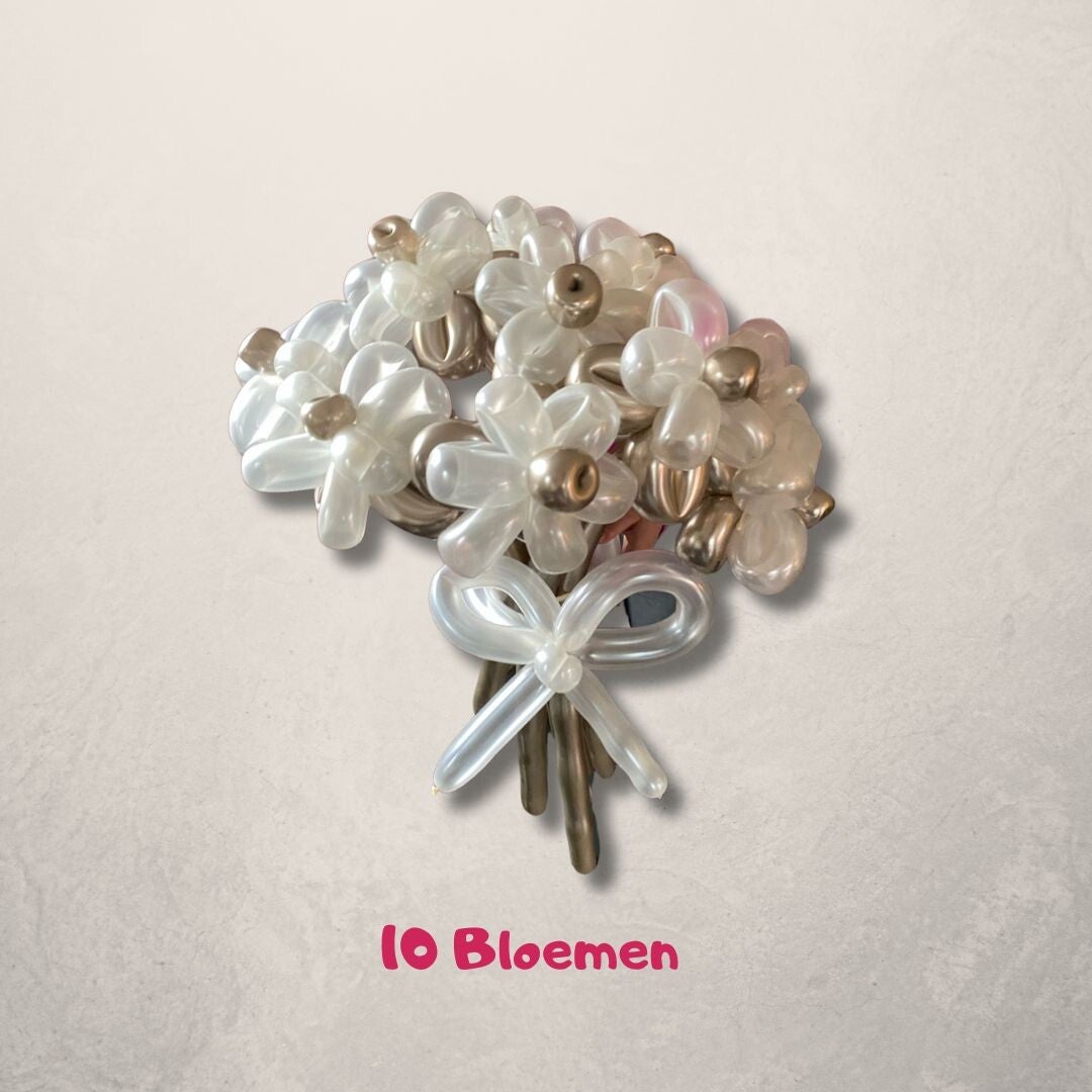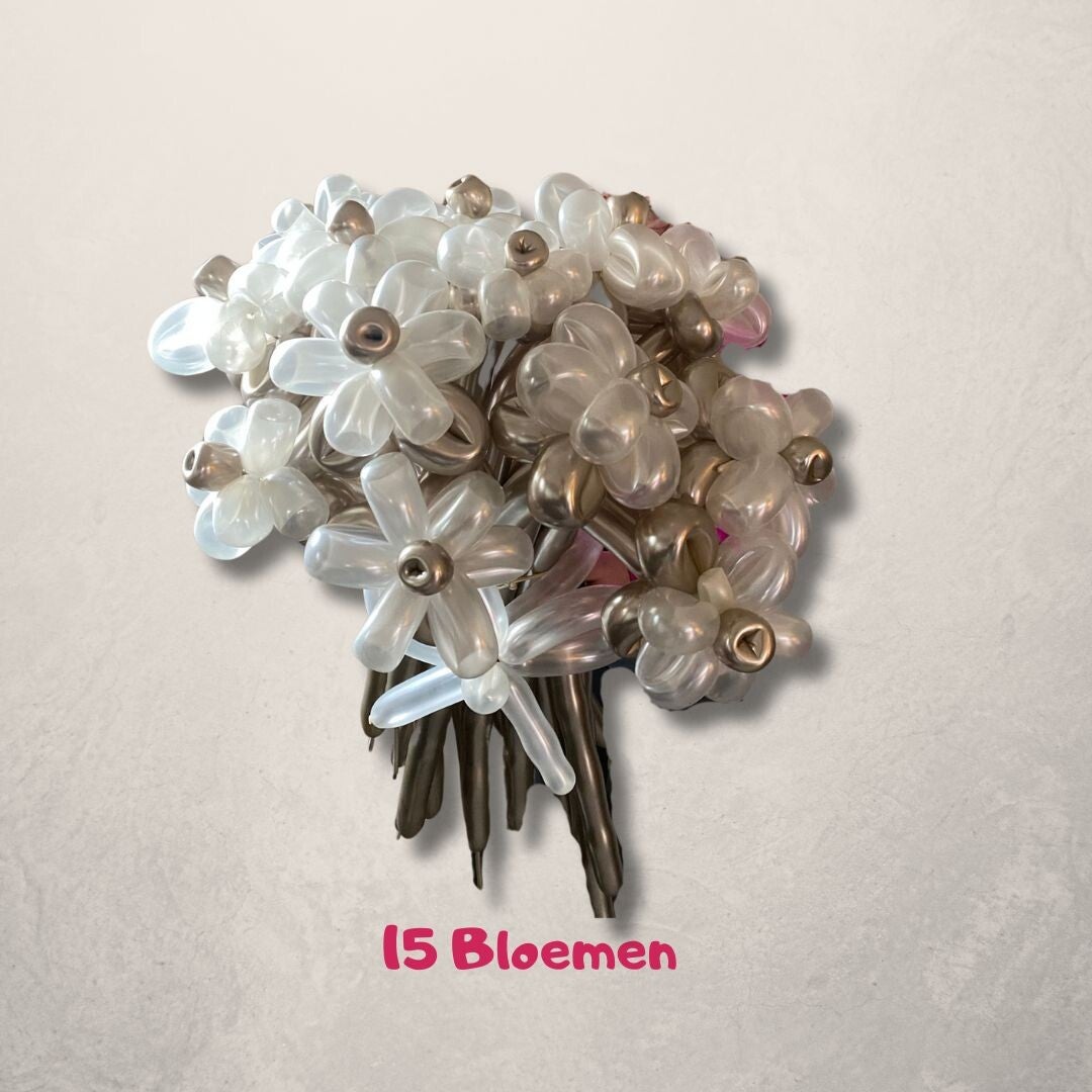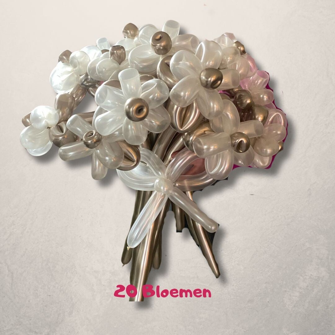 Op zoek naar een uniek en stijlvol cadeau? Ons ballonnen bloemenboeket in de luxe tinten champagne en pearl is dé perfecte keuze! Dit prachtige boeket blijft langdurig mooi en is een echte blikvanger in elk interieur.