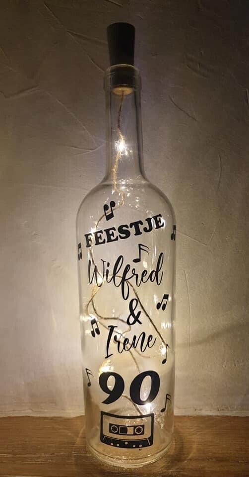 Een lichtfles geeft veel sfeer in huis en laat een mooie tekst of opdruk tot leven komen. Binnenkort een feestje? Nog op zoek naar een persoonlijk cadeau? Dit cadeautje is geschikt voor diverse gelegenheden!
