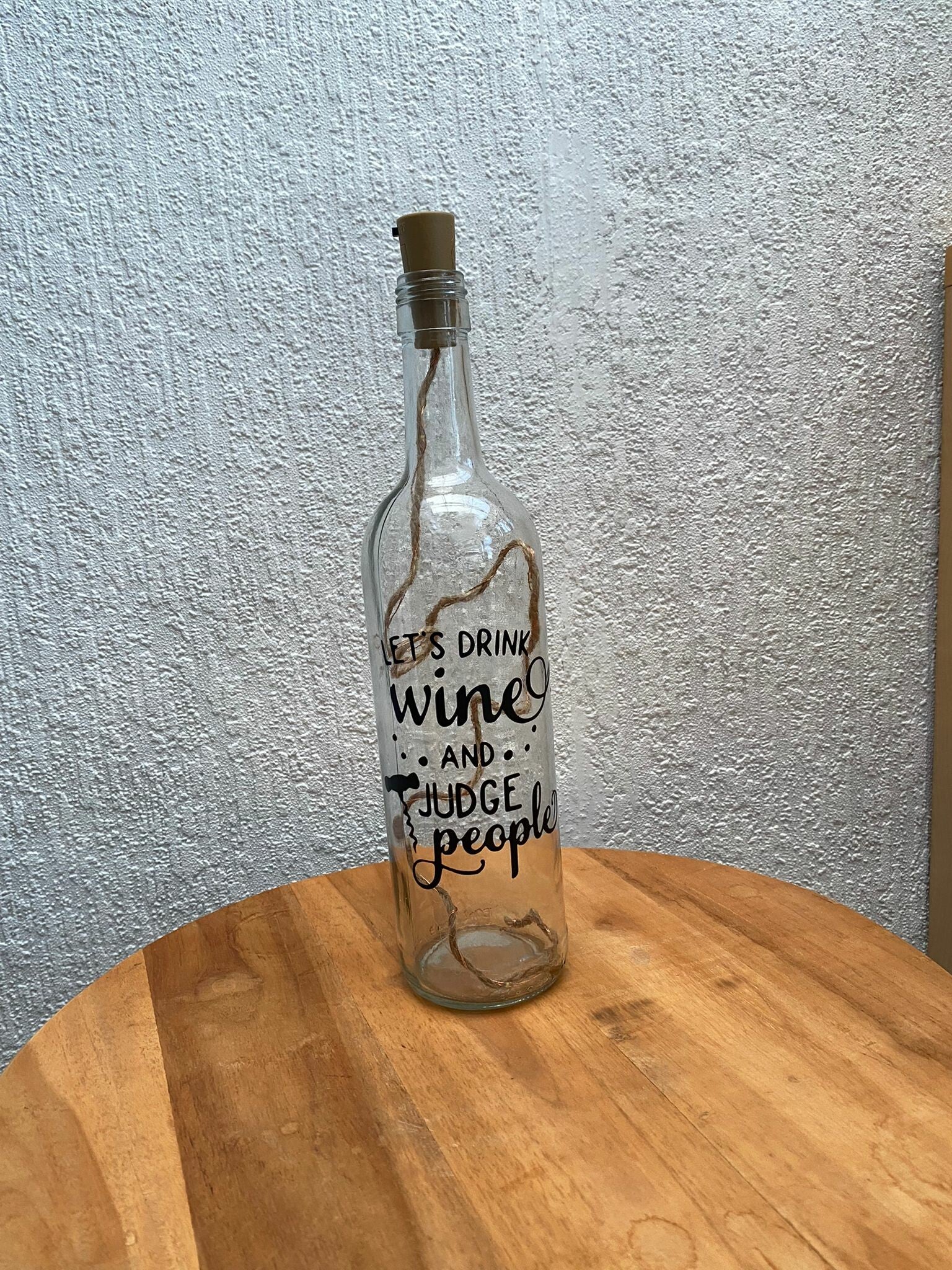 Een lichtfles wijn voorzien wij van een tekst naar wens.