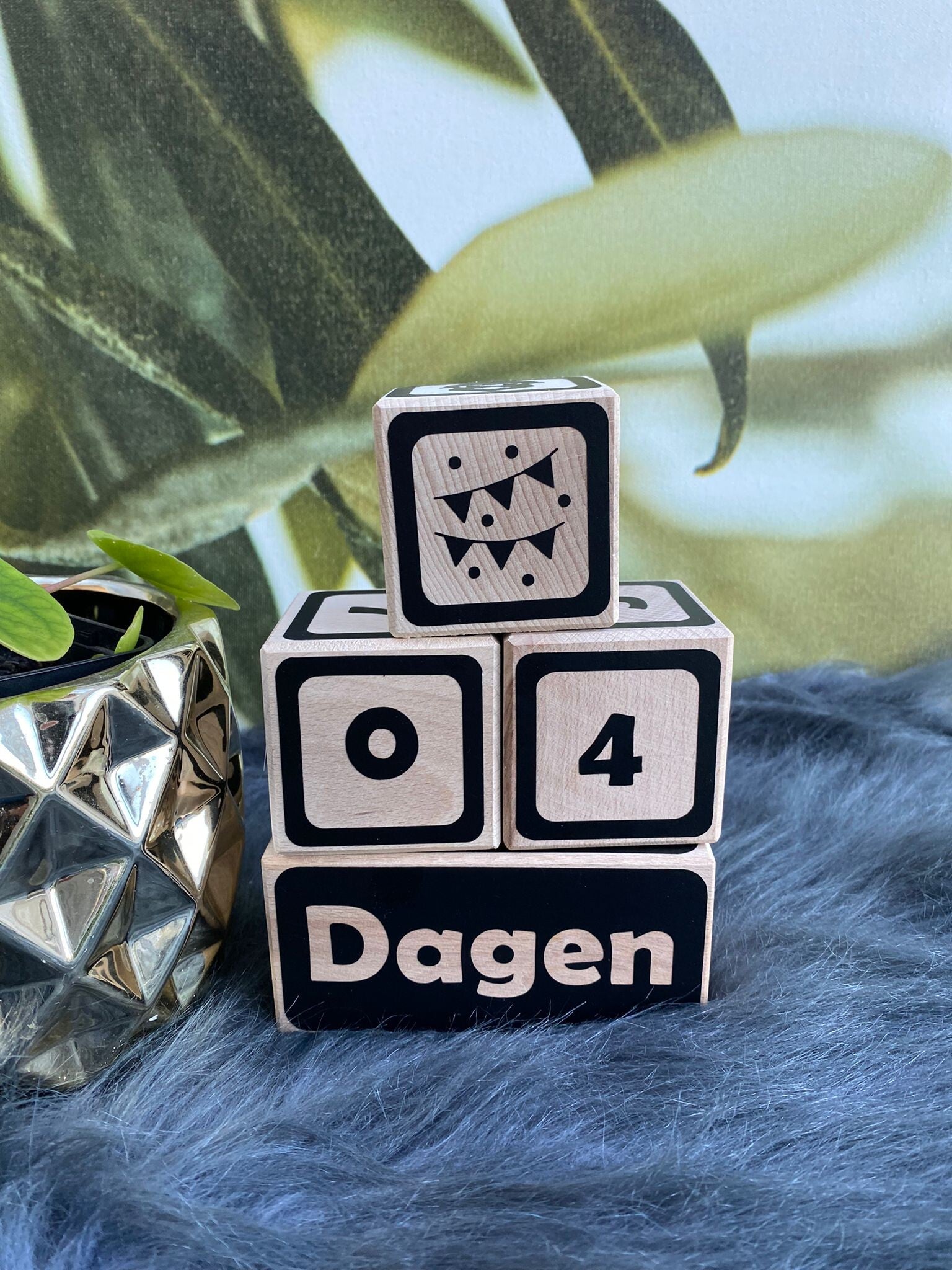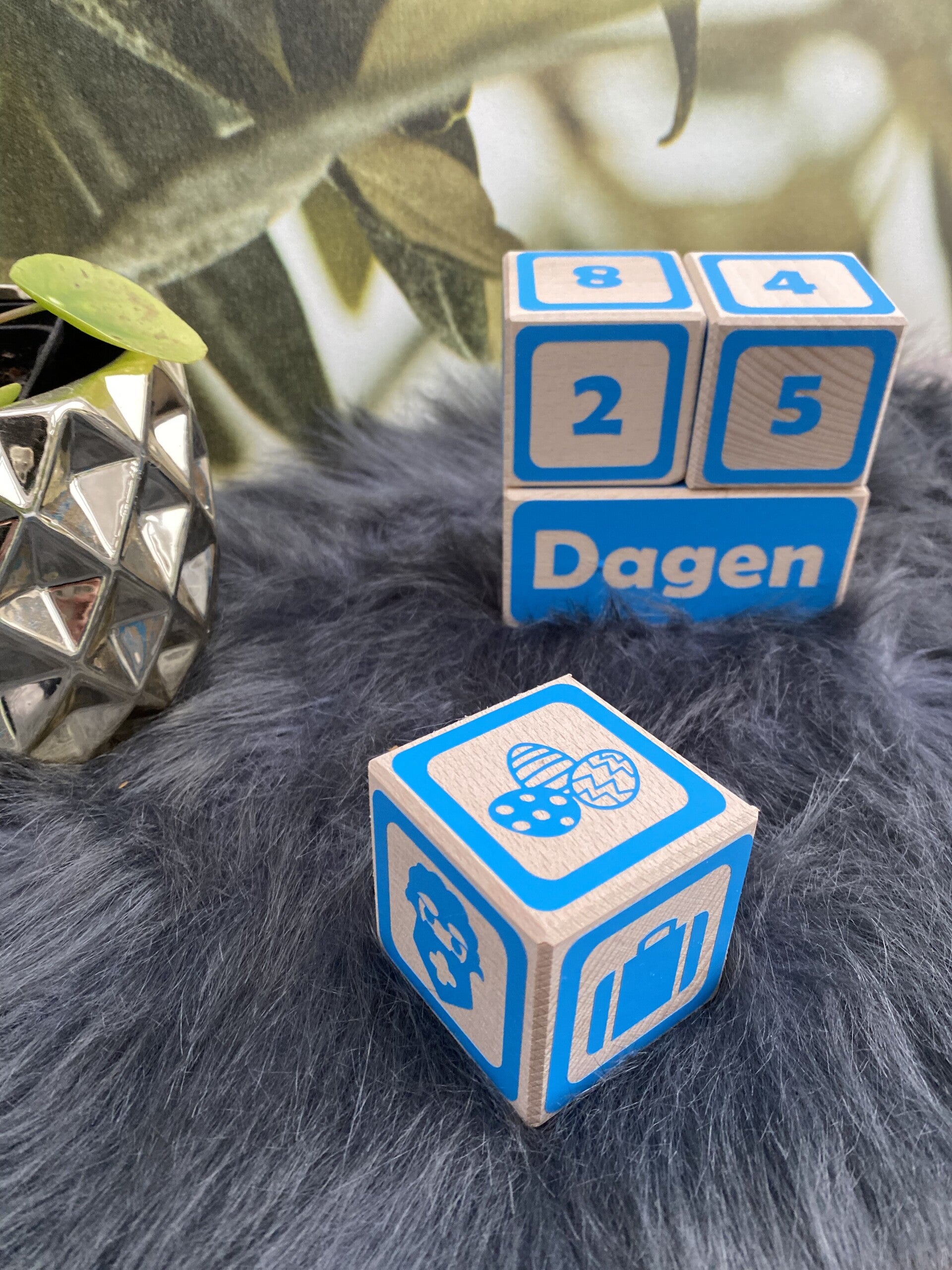 Deze houten set Aftelblokken wordt compleet verkocht voor 6 soorten feesten! Het bovenste blokje kun je draaien naar een ander feest, waarvoor je wil aftellen. (Zie foto 4+5)