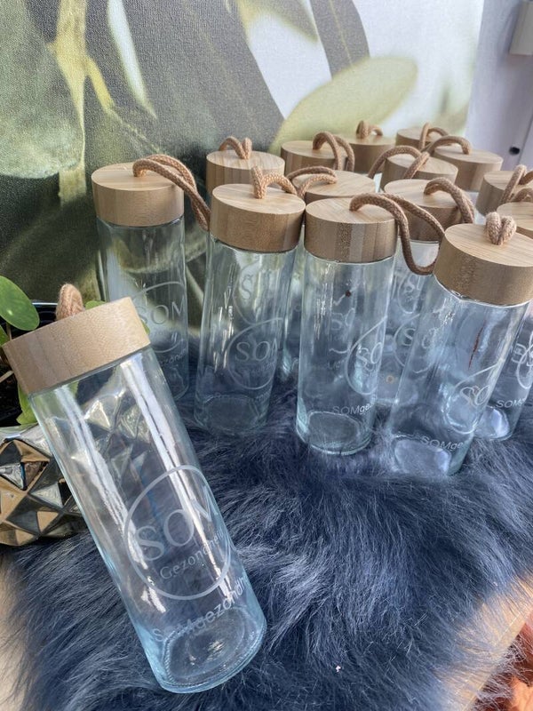 ✅ Glazen drinkfles 430ml - Perfect formaat onderweg ✅ Houten (look) dop - Natuurlijke, stijlvolle uitstraling ✅ Vaatwasbestendig logo - Blijft mooi na vele wasbeurten ✅ Bedrijfslogo gepersonaliseerd - Professionele merkzichtbaarheid ✅ Duurzaam & milieuvriendelijk - Herbruikbaar glas ✅ Persoonlijk advies - Logo mogelijkheden bespreken ✅ 9,5/10 klanttevredenheid - 81 tevreden klanten ✅ B2B expertise - Ervaring met bedrijven