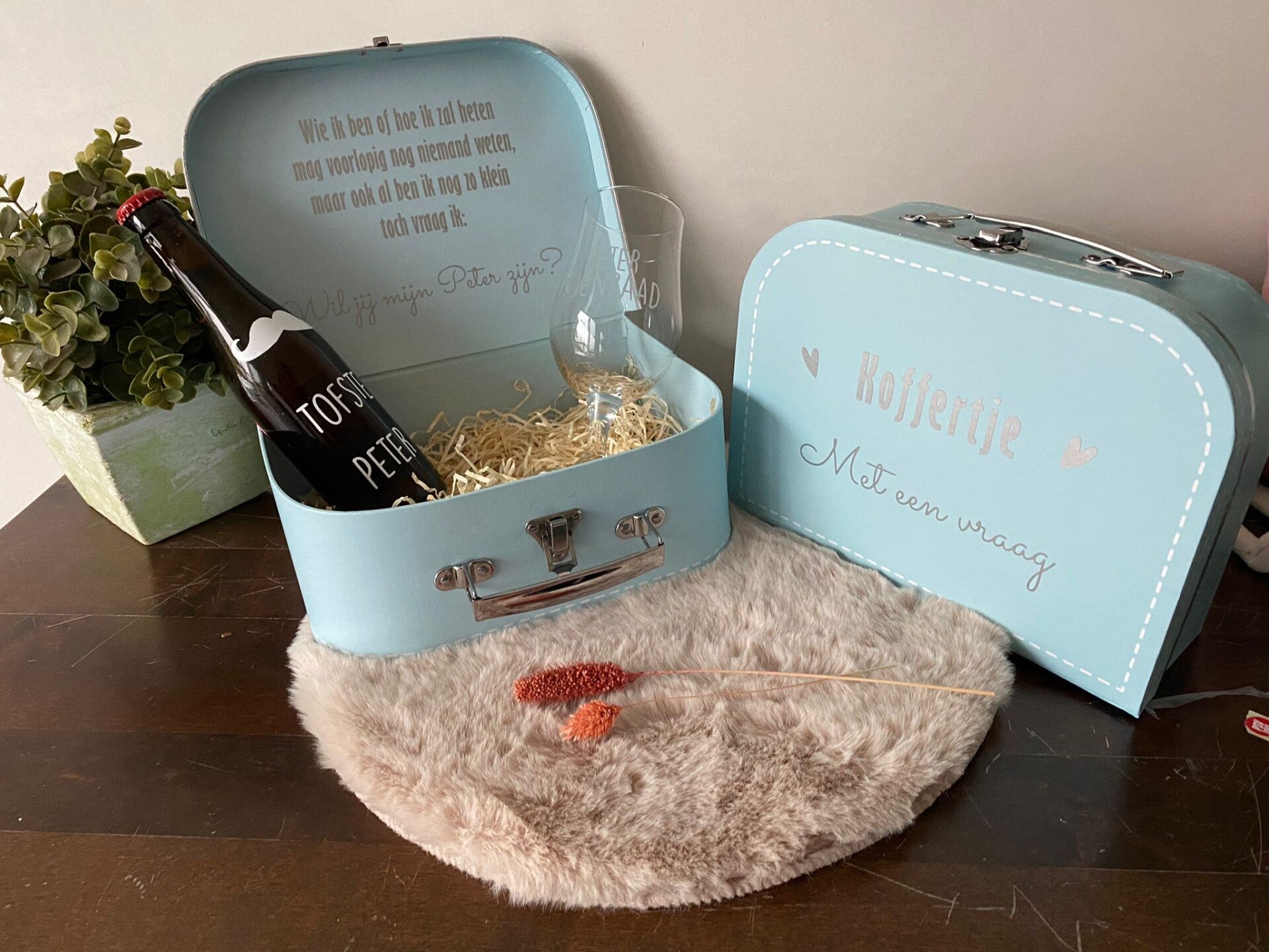 Maak van uw belangrijke vraag een onvergetelijk moment met een gepersonaliseerd koffertje! 💍✨🎁