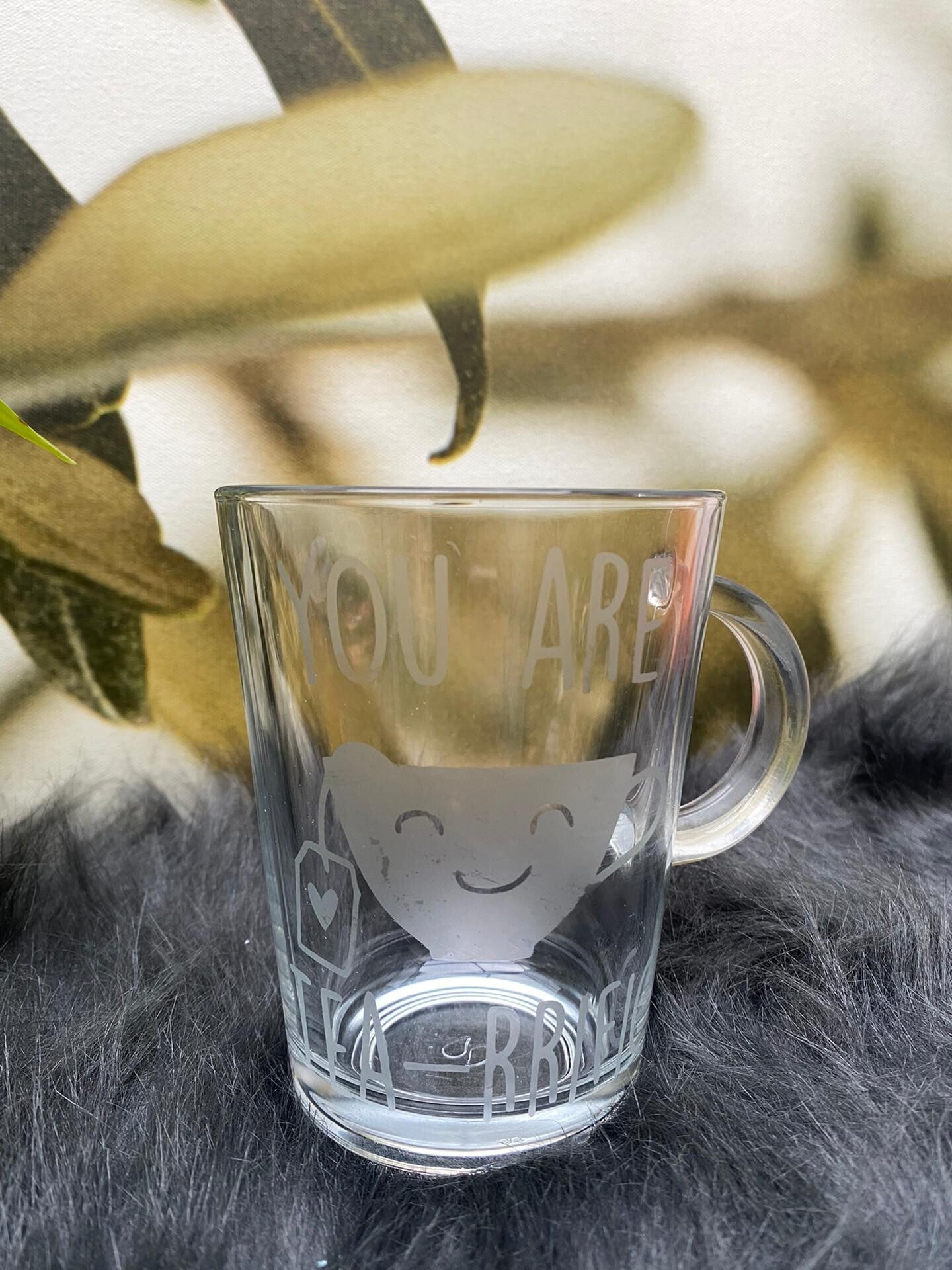 Wij kunnen theeglazen voorzien van een gepersonaliseerde tekst op maat of een opdruk op maat. Deze opdruk is permanent aangebracht en dus kan uw glas gewoon in vaatwasser.