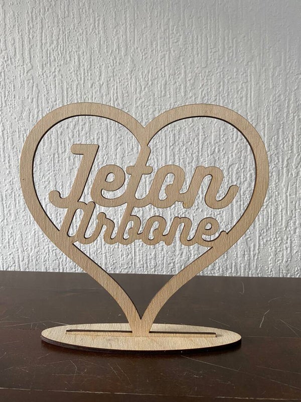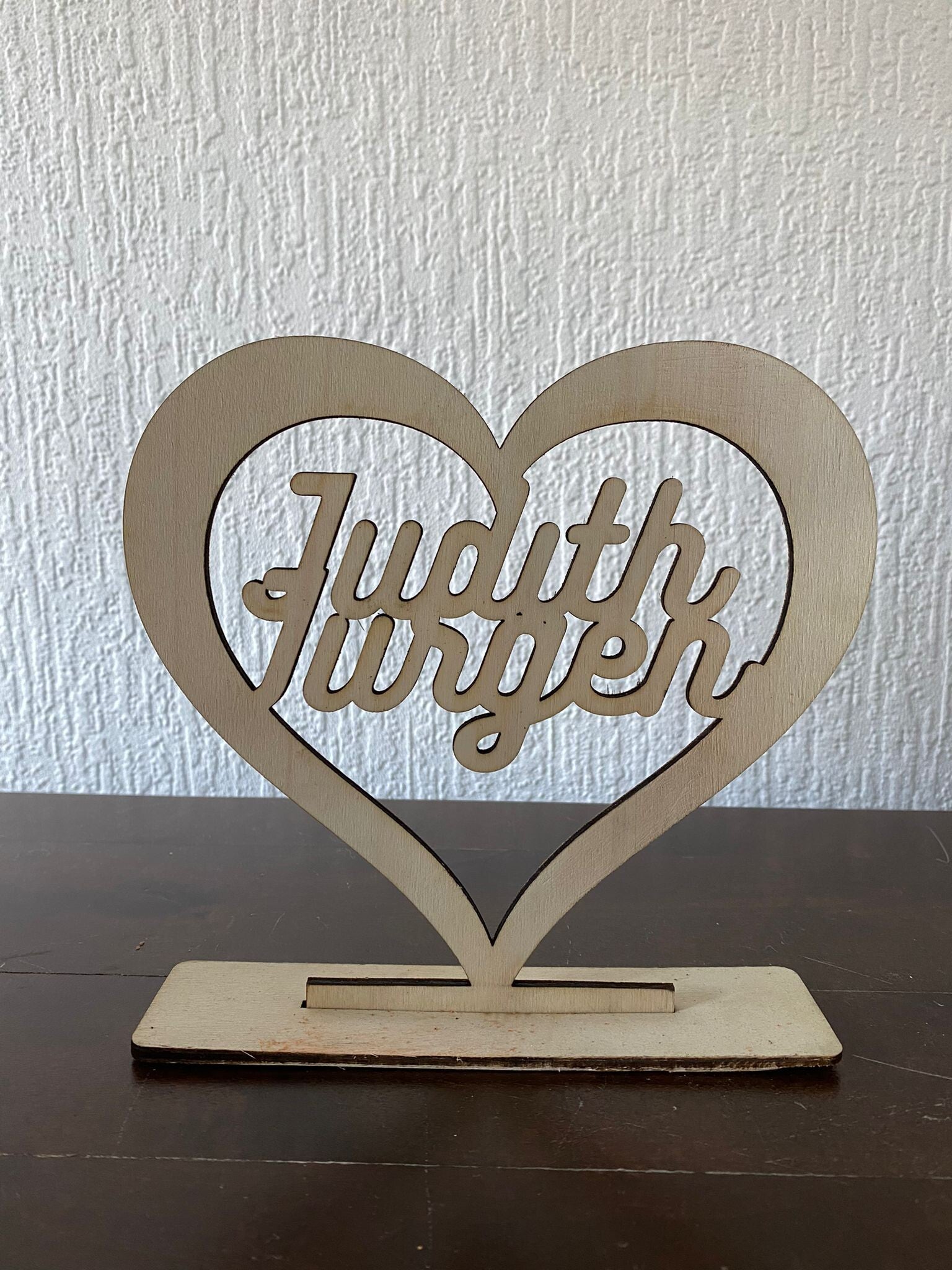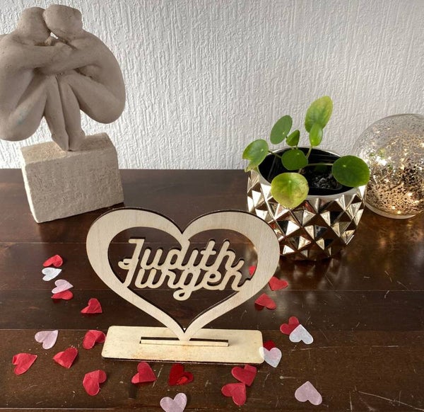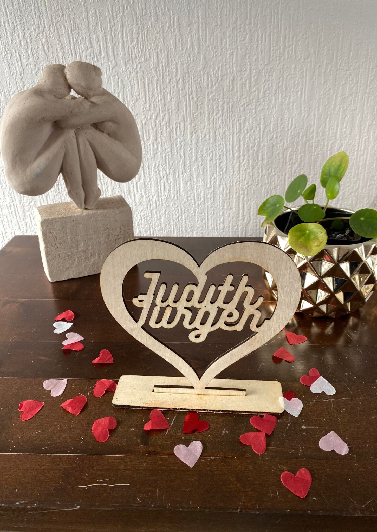 Het houten hartje is 18 cm hoog op een houten standaard dat meegeleverd wordt.