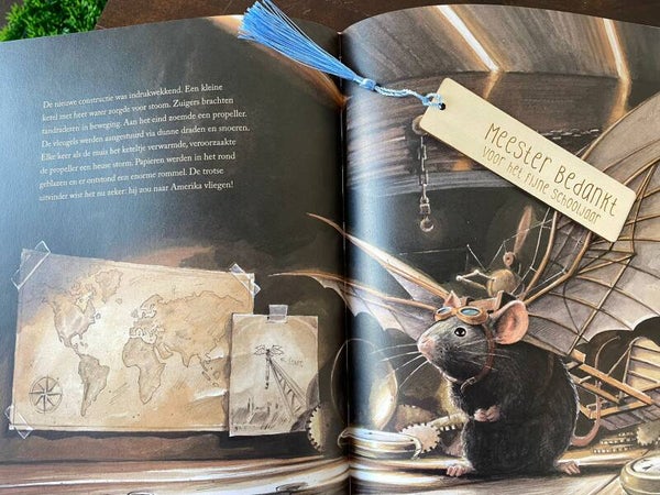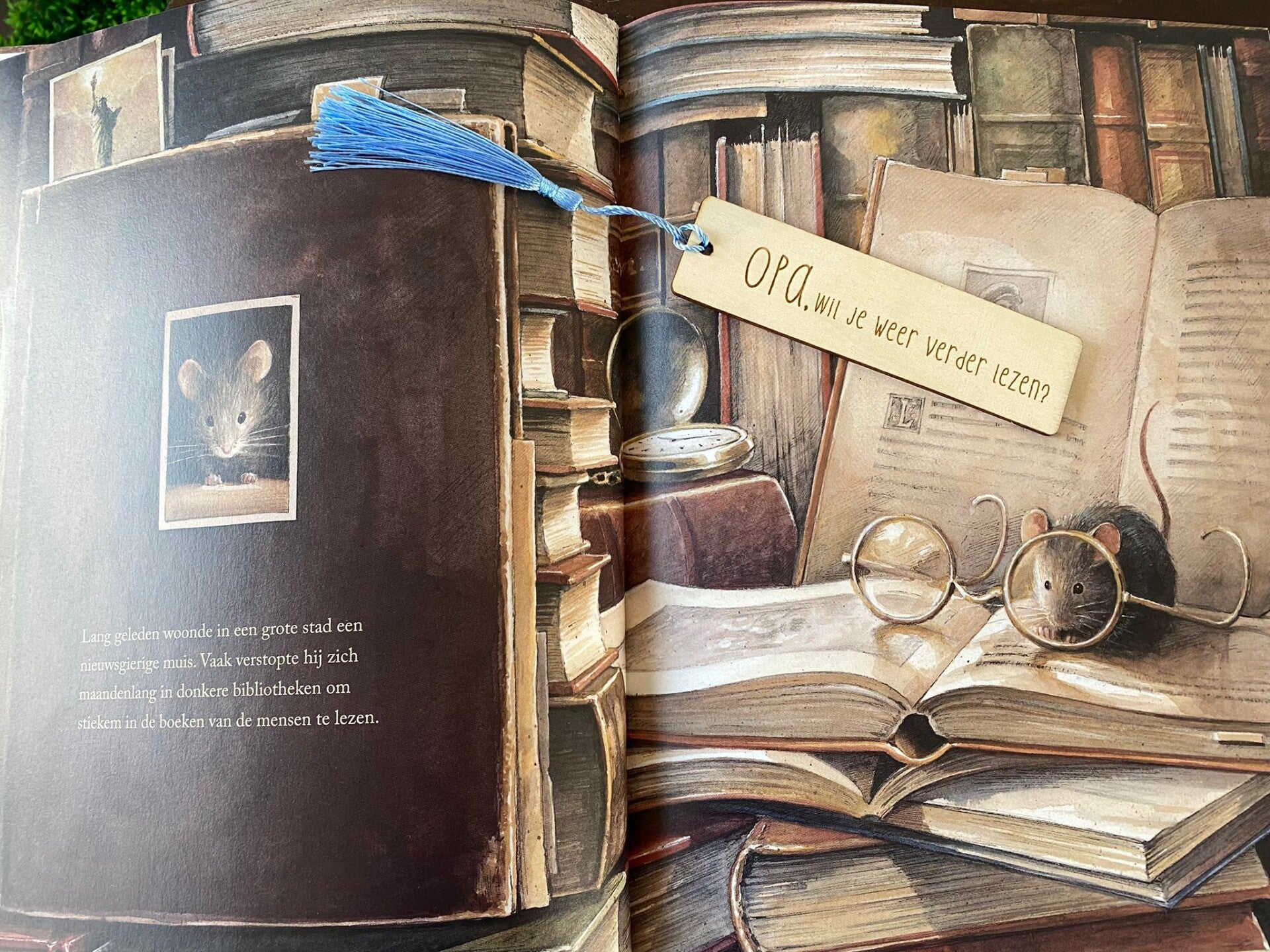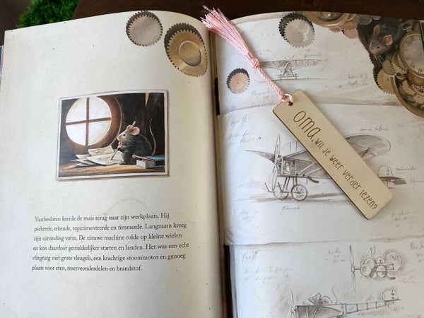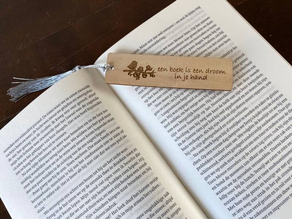 Houten boekenleggers met verschillende opdrukken / teksten mogelijk.
