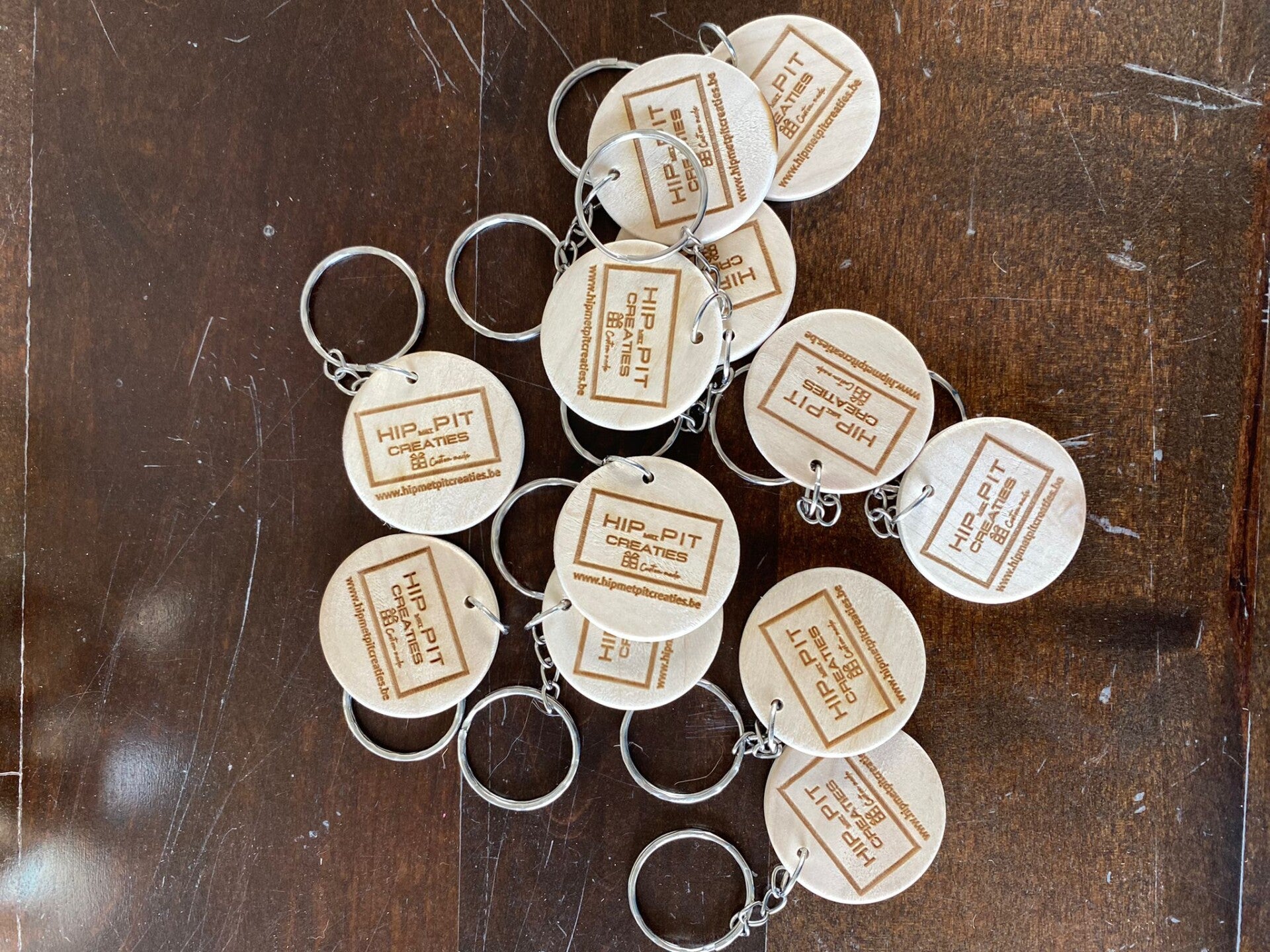 Houten Sleutelhangers met Bedrijfslogo ( per 10 stuks )