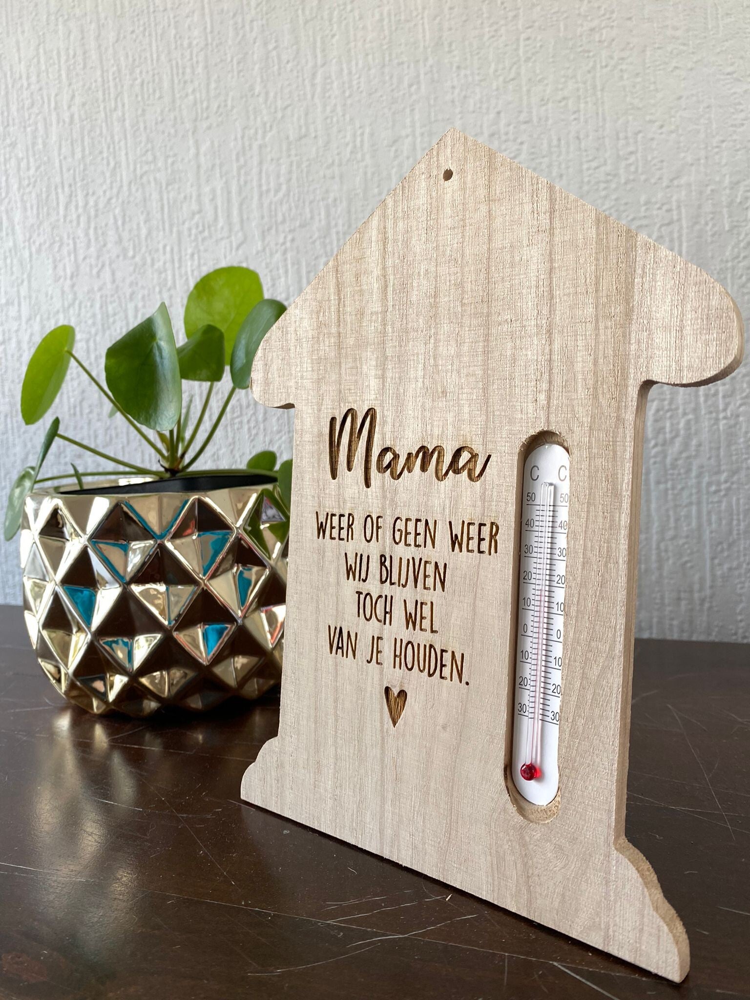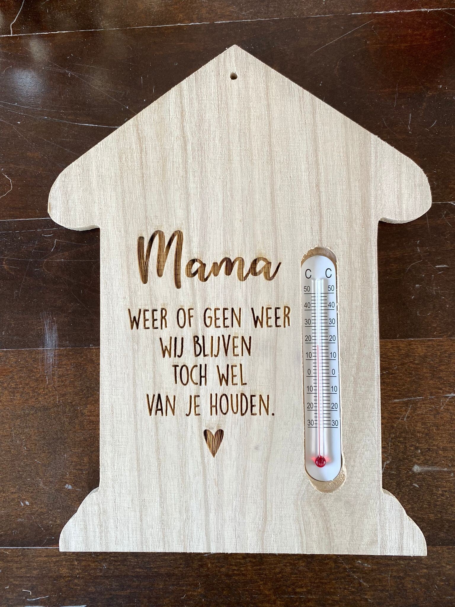 Houten Thermometer met tekst voor mama, papa, omi, tantie, nonkel, vake, etc....