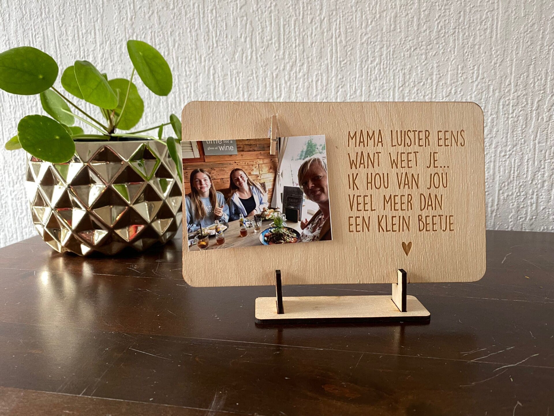 Houtenbordje met foto klem Mama