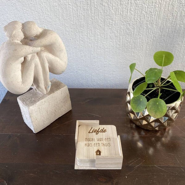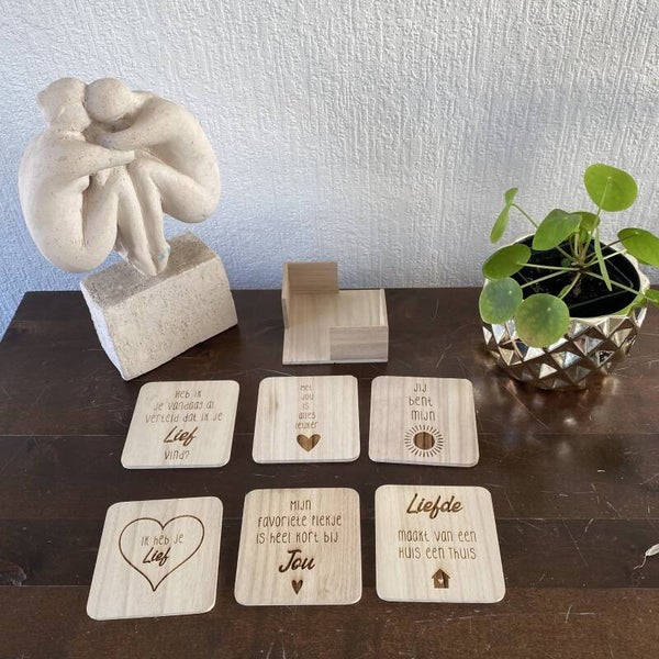 Houten vierkanten onderzetters liefde