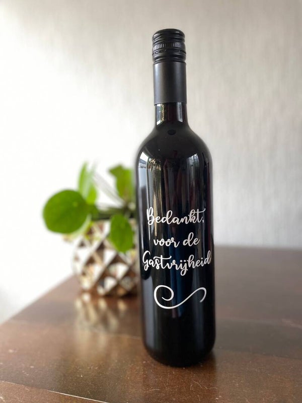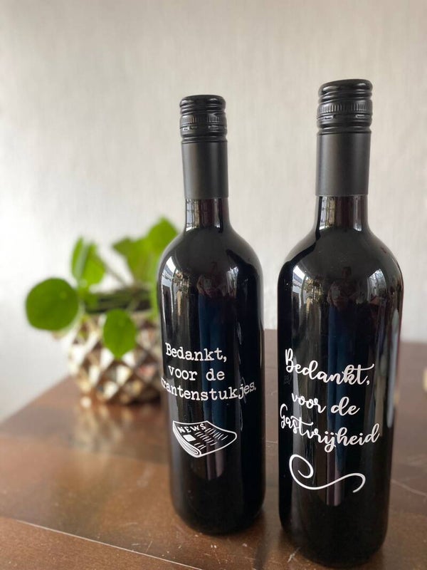 Op basis van uw gelegenheid personaliseren wij een fles wijn voor u. Dit kan op een fles rode wijn, witte wijn of rose wijn.