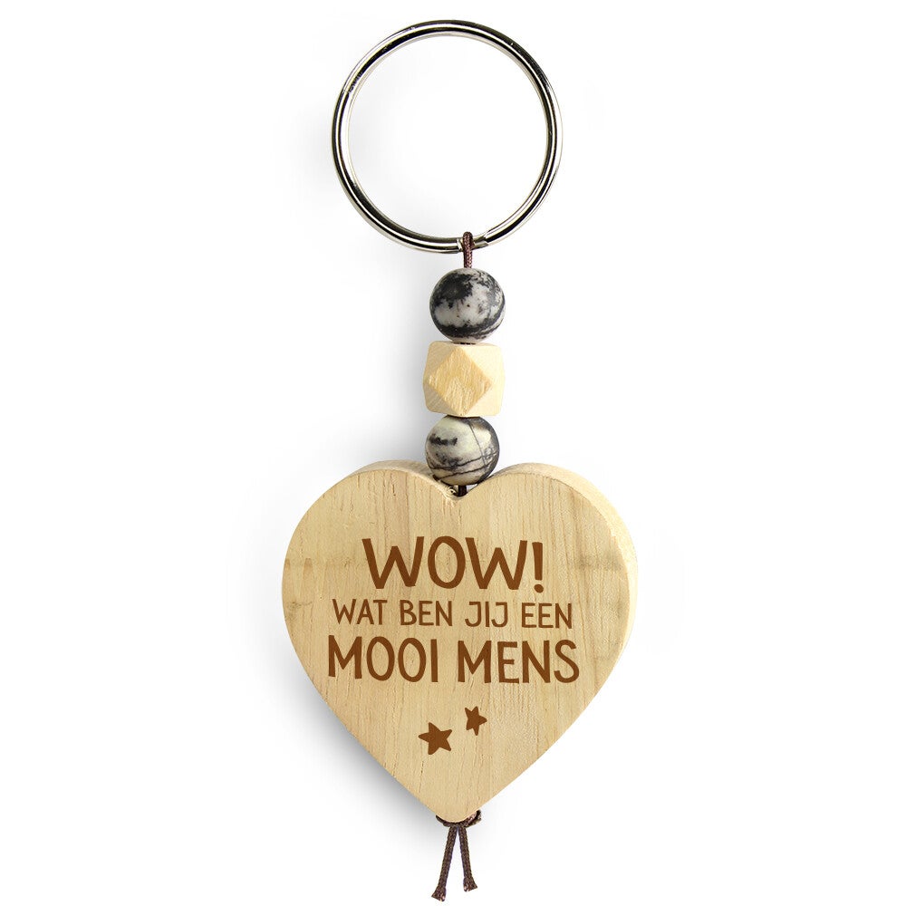 Houten sleutelhanger - Mijn Hart - Wow wat ben jij een Mooi Mens
