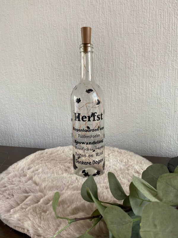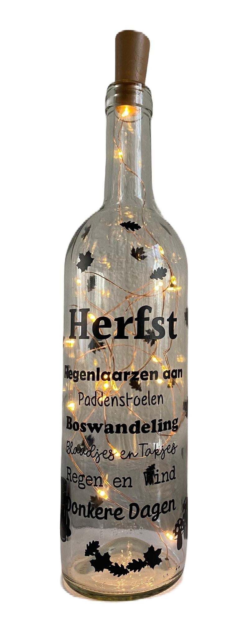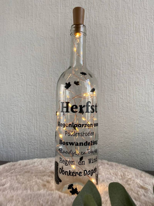 Lichtflessen met tekst zijn heel leuk als decoratie in huis of winkel. Het geeft sfeer zeker in de donkere dagen van het jaar.